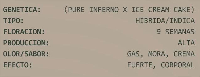 Ideal para el trabajo de resinas y extracciones. Genera una capa muy gruesa de tricomas con cabezas grandes dando un retorno altisimo en materia de rosin o hash.